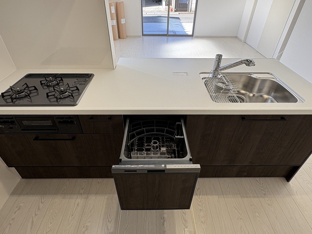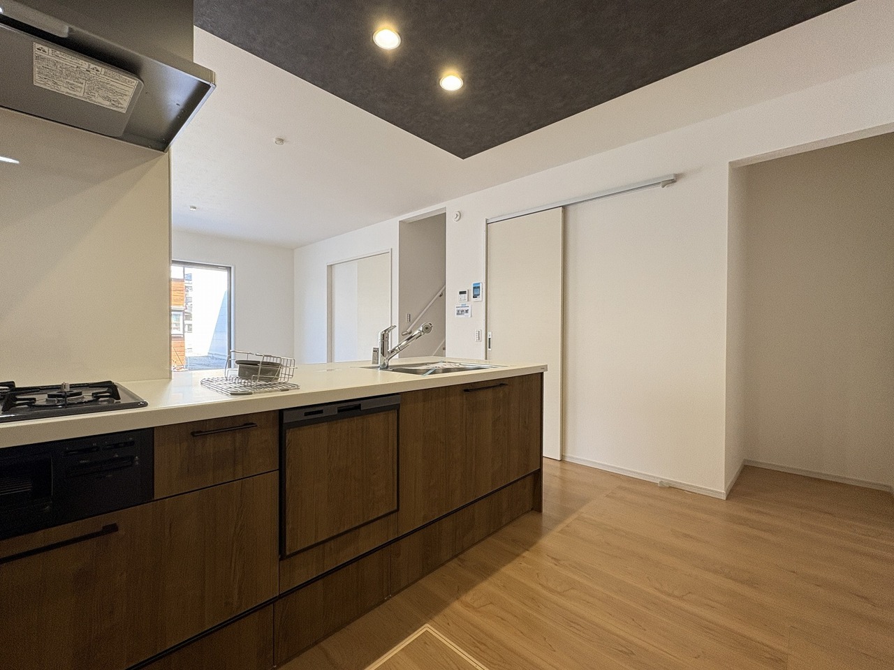 ■リビング内見渡せる対面キッチン