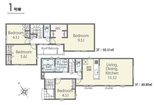 | 間取 | 4LDK (LDK15.5帖、洋室4.5帖、洋室9.5帖、洋室5.6帖、洋室4.5帖) | ||