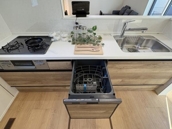 キッチン IHコンロ、3口タイプのガスコンロで同時調理が可能です。時短&節水に便利な食洗機付き