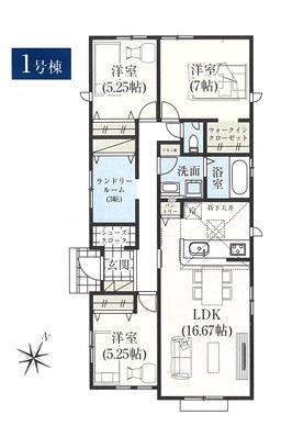 | 間取 | 3LDK~4LDK (LDK16.67帖、洋室7帖、洋室5.25帖、洋室5.25帖) | ||
