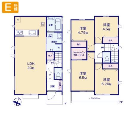 | 間取 | 4LDK (LDK20帖、洋室6.5帖、洋室5.25帖、洋室4.75帖、洋室4.5帖) | ||