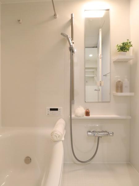 バス 1日の疲れをゆっくりと癒すバスルーム。 白を基調とし水垢が目立ちにくいのもポイント。