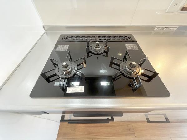 キッチン 3口タイプのガスコンロは同時調理で時短。