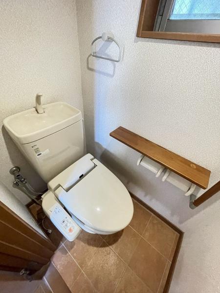 トイレ 立ち上がりに便利な手すり付きのトイレ。温水洗浄便座です。