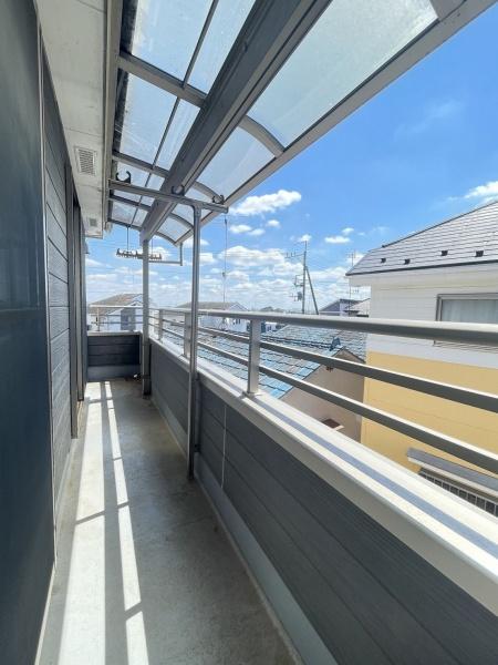 バルコニー 急な雨でも安心の屋根付きのバルコニー。