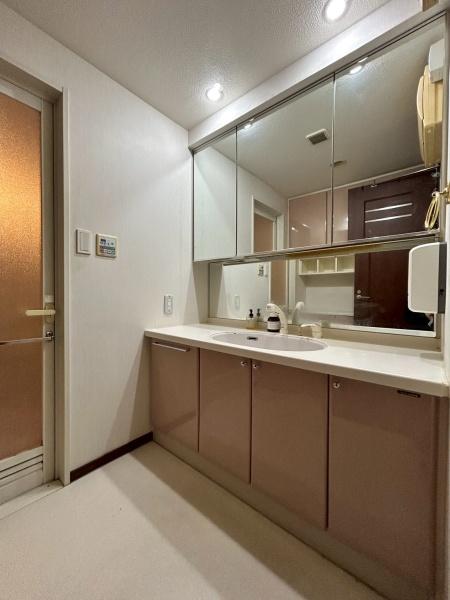洗面台・洗面所 収納豊富な洗面台。備品をすっきりさせることで生活感が出にくくなります。