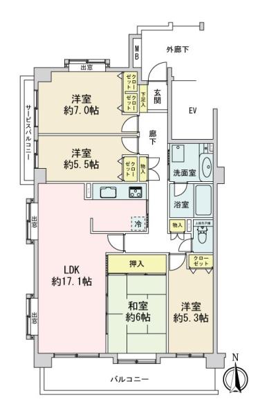 収納 7帖洋室内クローゼット。用途に応じて使い分けでできます。