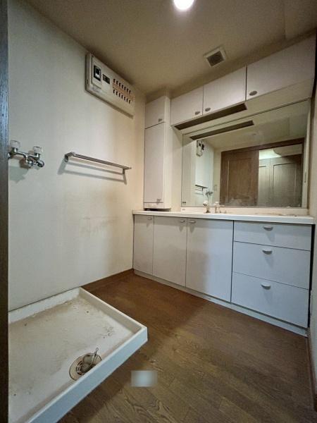 洗面台・洗面所 収納豊富な洗面台。備品をすっきりさせることで生活感が出にくくなります。洗濯機スペースもしっかり確保されています。