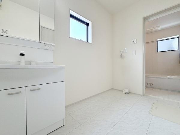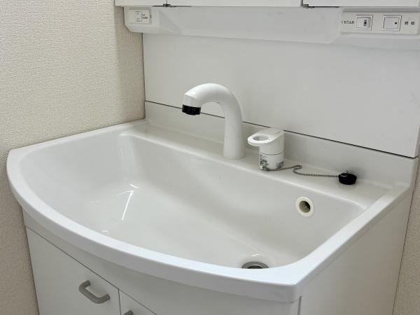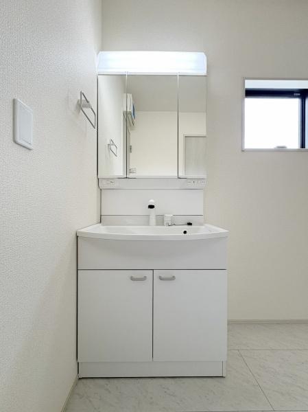 洗面台・洗面所 三面鏡付きの洗面台です。鏡裏にも収納可能。