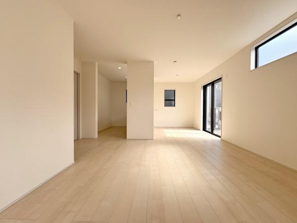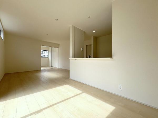 リビング キッチンまで一つにつながる開放感。16.5帖です。