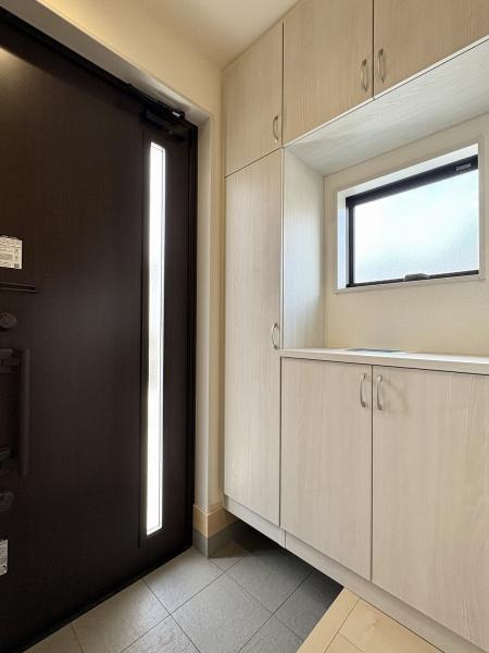 玄関 たっぷりと収納できるシューズボックスを備えた玄関内。