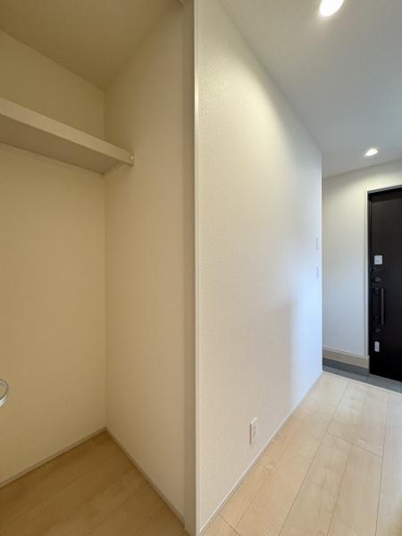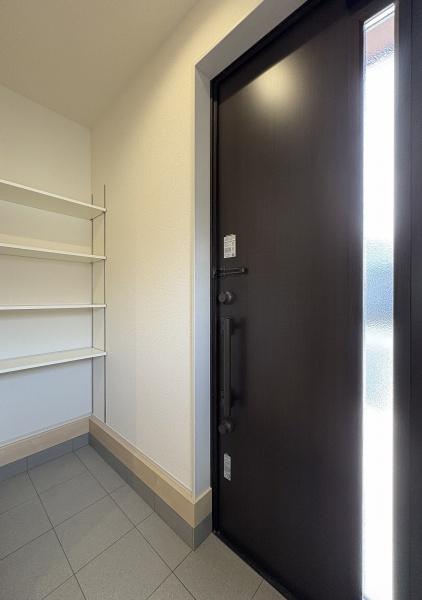 玄関 シューズボックスの他にオープン収納棚が設置されています。