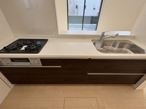 キッチン 作業スペースが広く、収納豊富で使いやすいキッチンです。