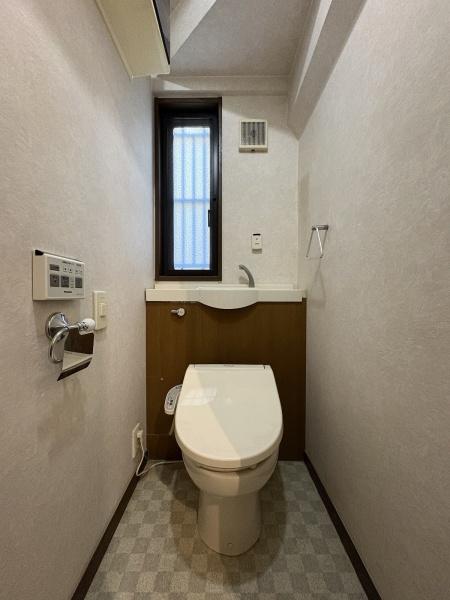 トイレ 1階トイレ。お手洗いは温水洗浄便座です。