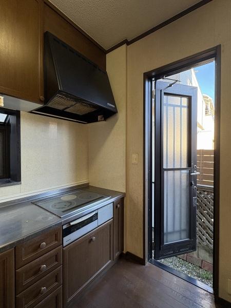 キッチン 勝手口があるので買い物した物を直接運び込むことができます。