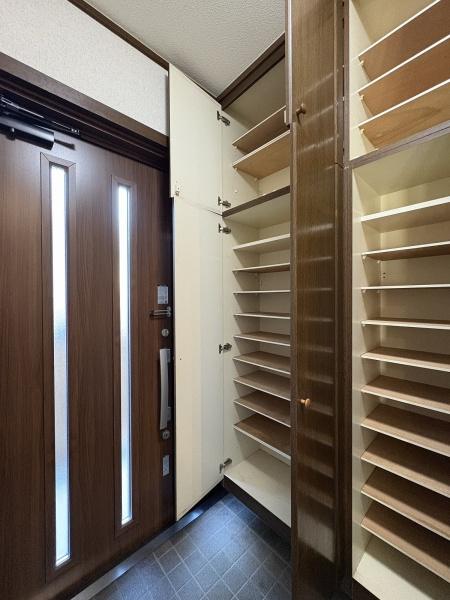 玄関 たっぷり収納できるシューズボックスを備えた玄関内。