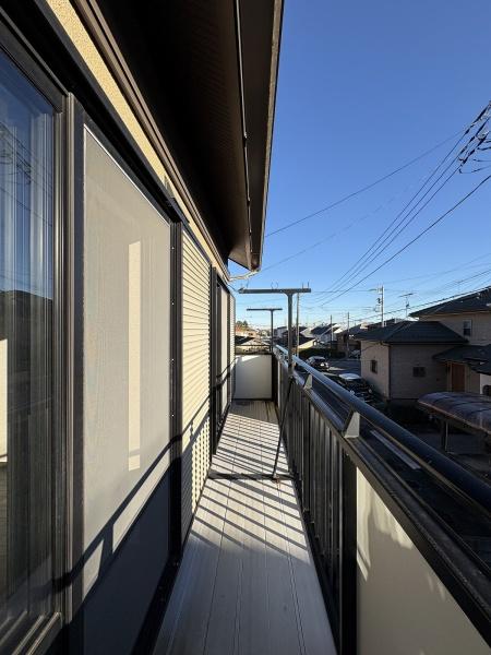 バルコニー 二部屋から出入り可能なバルコニー。