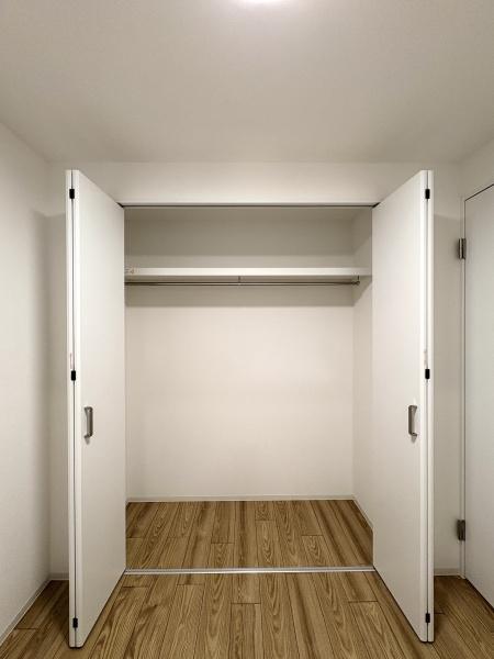 収納 4帖洋室内クローゼット。小物の整理がしやすい棚付きです。