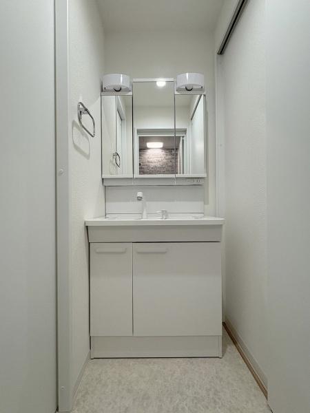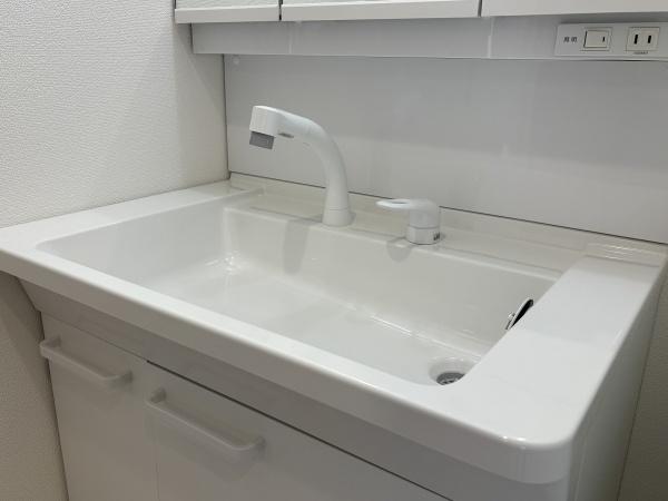 洗面台・洗面所 収納豊富な洗面所。備品をすっきりさせることで生活感が出にくくなります。