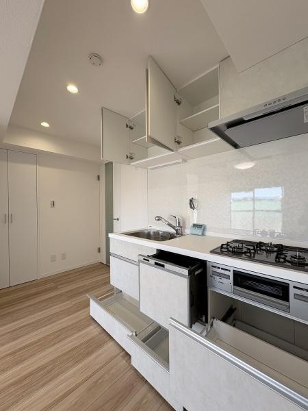 キッチン 壁向きのキッチンは空間を広く使うことができます。