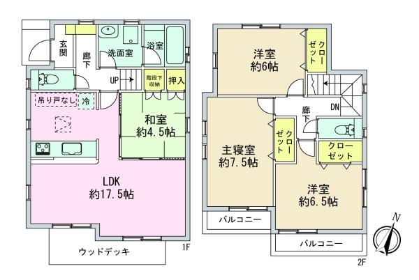 | 間取 | 4LDK (LDK17.5帖、和室4.5帖、洋室7.5帖、洋室6.5帖、洋室6帖) | ||