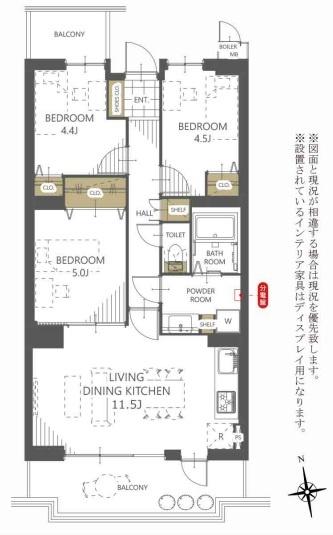 | 間取 | 3LDK (LDK11.5帖、洋室5帖、洋室4.5帖、洋室4.4帖) | ||