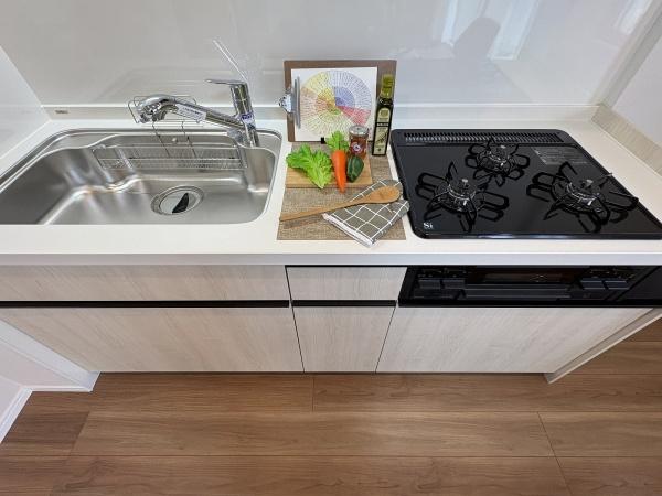 キッチン 壁向きのキッチンは空間を広く使うことができます。