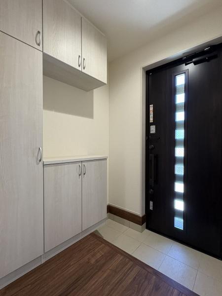 玄関 シューズボックスの他にコート類も収納できるスペースを備えた玄関内。