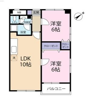 | 間取 | 2LDK (LDK10帖、洋室6帖、洋室6帖) | ||