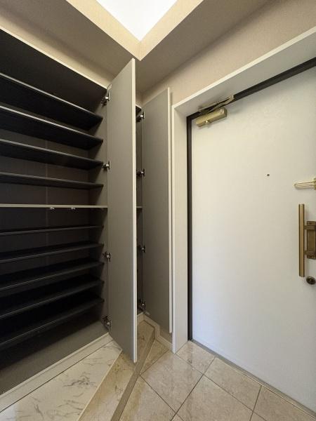 玄関 たっぷりと収納できるシューズボックスを備えた玄関内。