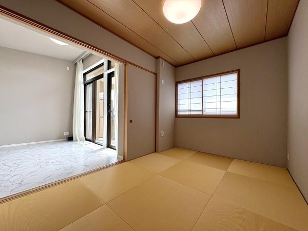 リビング 隣の和室と合わせて広々と使えるリビング空間。