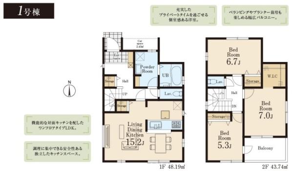 | 間取 | 3LDK (LDK15.2帖、洋室7帖、洋室6.7帖、洋室5.3帖) | ||