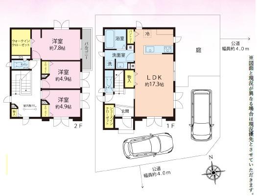| 間取 | 3LDK (LDK17.3帖、洋室7.8帖、洋室4.9帖、洋室4.9帖) | ||