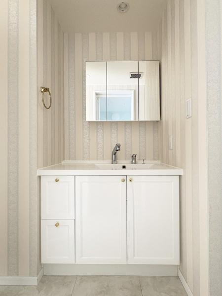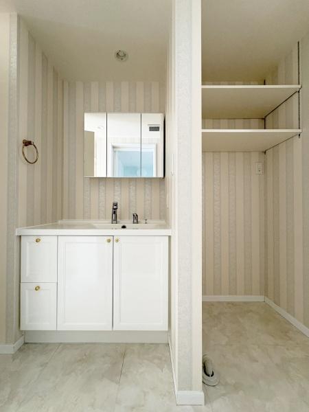 洗面台・洗面所 収納豊富な洗面所。備品をすっきりさせることで生活感が出にくくなります。