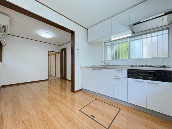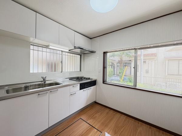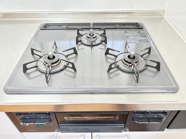 キッチン 3口タイプのガスコンロで同時調理が可能。キッチングリル付きです。
