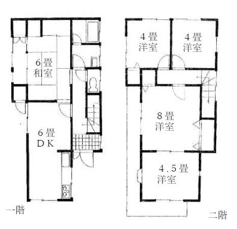| 間取 | 5DK (DK6帖、和室6帖、洋室8帖、洋室4.5帖、洋室4帖、洋室4帖) | ||