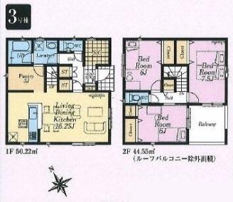 | 間取 | 3LDK (LDK16.25帖、洋室7.5帖、洋室6帖、洋室6帖) | ||