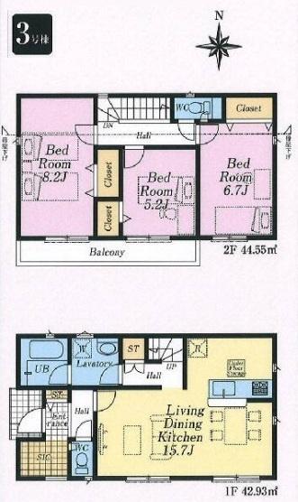 | 間取 | 3LDK (LDK15.7帖、洋室8.2帖、洋室6.7帖、洋室5.2帖) | ||